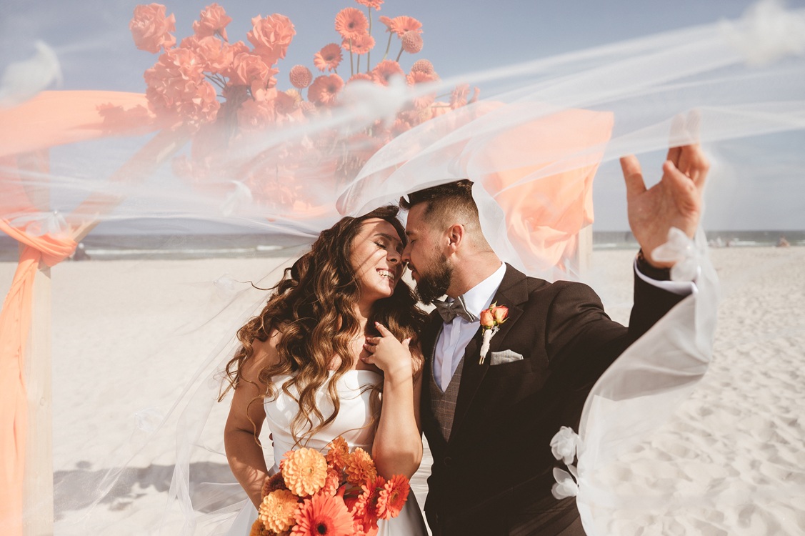 Ślub plenerowy nad polskim morzem, z pustą plażą i piękną pogodą jest możliwy, czego dowodem jest właśnie ta realizacja. Wymaga to jednak ogromu doświadczenia, by wszystko udało się tak zorganizować, by para mogła spokojnie skupić się na zachwycaniu atmosferą, podziwianiu widoków i świętowaniu w gronie najbliższych. A cała organizacyjna praca, od zadbania o odpowiednie miejsce, po przygotowanie go i dopilnowanie, by wszystkie etapy organizacji ślubu i wesela przebiegały sprawnie, to zadanie dla konsultanta ślubnego.