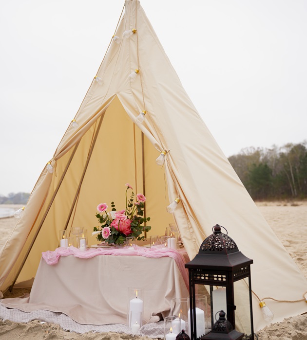 Zabierz swoją ukochaną na spacer po plaży, podczas którego napotkacie na magiczny piknik w tipi czy pod romantycznym parasolem. Uklęknij i zadaj ukochanej te najważniejsze pytanie „Czy wyjdziesz za mnie?”, by następnie wznieść toast za Wasze oświadczyny na plaży schłodzonym prosecco. Celebrujcie ten moment jak najdłużej, rozkoszujcie się wyjątkowymi słodkościami i truskawkami przy urokliwym zachodzie słońca. Ten pomysł na zaręczyny na pewno skradnie jej serce.